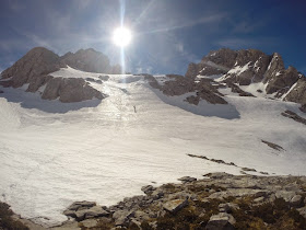 decidimos sobrepasarlo sin encordar, hielo bueno y nieve dura, vamos bien.